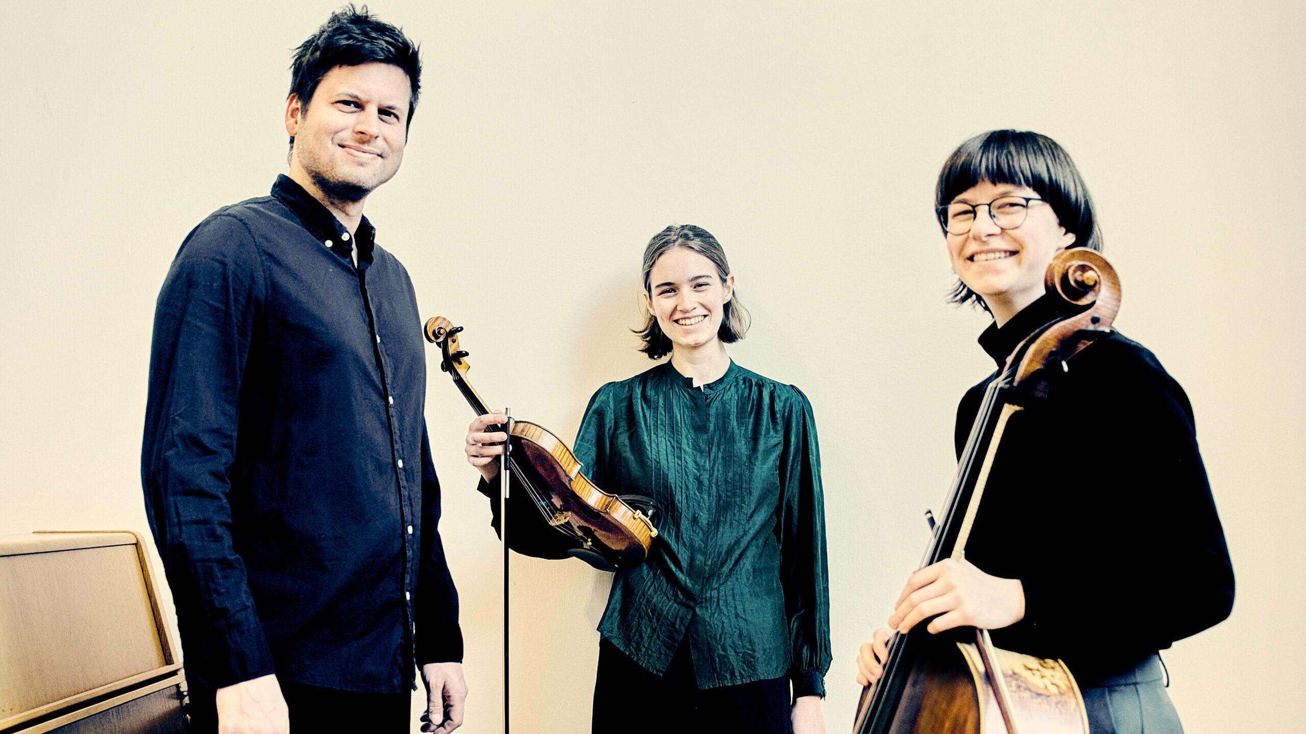 Das Trio Myosotis, bestehend aus Studierenden der Stella Musikhochschule – Maja Willi (Violine), Ida Riedel (Violoncello) und Florian Altwegg (Klavier) – spielt das „Trio sur mélodies populaires irlandaises“ von Frank Martin (2. Satz: Adagio, 3. Satz: Gigue).